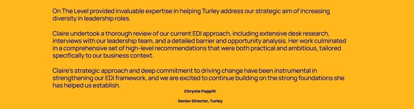 Turley commissioned On The Level to support the next phase of their journey: developing a strategy to build a more inclusive and representative leadership team by 2030.